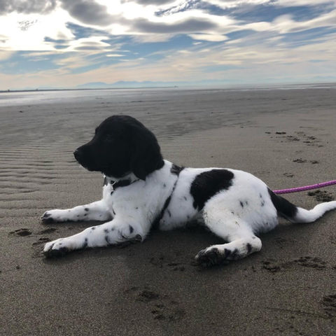 Buster is from Samso Stabyhouns in Denmark but he now calls California home. He is very affectionate and loves cuddles. His favourite activities include trips to the beach, where he enjoys running in the waves and catching balls.